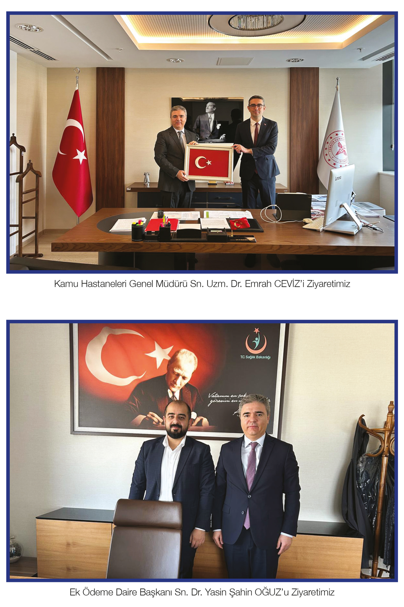 Kamuda çalışan meslektaşlarımızın FTR alanındaki ek ödemelerde yaşadıkları sorunların ve çözüm önerilerinin iletilmesi amacıyla Sağlık Bakanlığı Kamu Hastaneleri Genel Müdürlüğü görevine atanan Uzm. Dr. Sn. Emrah CEVİZ ve Ek Ödeme Daire Başkanı Dr. Sn. Yasin Şahin OĞUZ ziyaret edilmiştir. Bu görüşmelerde konuyla ilgili önerilerimiz sözlü ve yazılı olarak muhataplarına sunulmuştur.