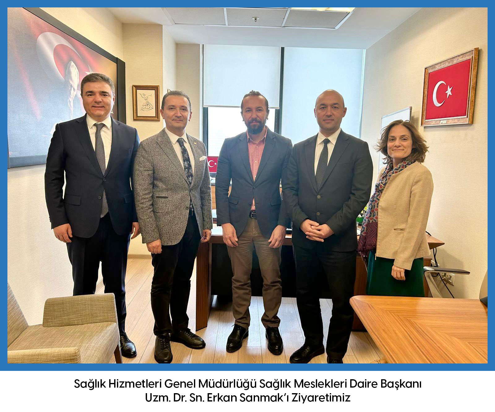 Türkiye Fiziksel Tıp ve Rehabilitasyon Derneği ve Türkiye Fiziksel Tıp ve Rehabilitasyon Uzman Hekimleri Derneği olarak Sağlık Bakanlığı Sağlık Hizmetleri Genel Müdürlüğü Sağlık Meslekleri Daire Başkanı Uzm. Dr. Sn. Erkan Sanmak 23 Ocak 2025 tarihinde ziyaret edilmiş, gündemdeki konularla ilgili olarak Derneklerimizin görüşleri kendilerine iletilmiş ve karşılıklı görüş alışverişinde bulunulmuştur.